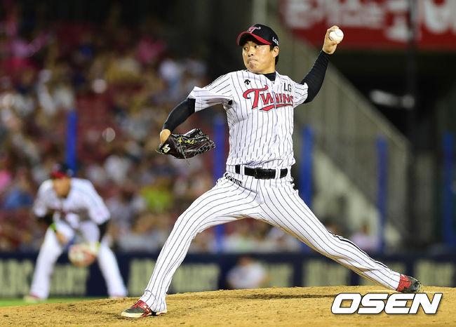 2일 오후 서울 잠실구장에서 열린 '2014 한국야쿠르트 세븐 프로야구' LG 트윈스와 넥센 히어로즈의 경기 8회초 마운드에 올라온 윤지웅이 역투하고 있다.