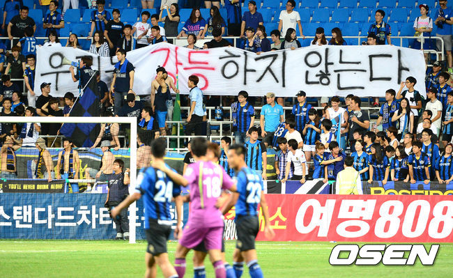 경기후 인천 서포터즈가 '우리는 강등하지 않는다' 걸개를 들고 승리를 기뻐하고 있다. / jpnews@osen.co.kr