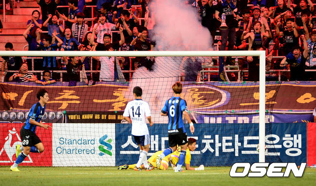 후반 인천 진성욱이 선제골을 넣자 서포터즈가 열광하고 있다./ jpnews@osen.co.kr