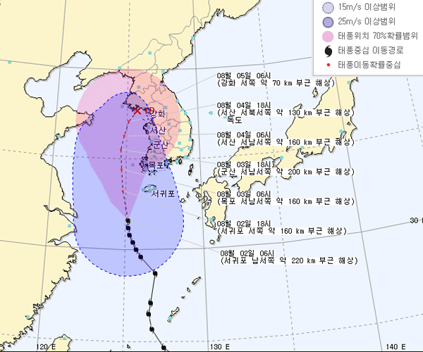 기상청은 제주도에는 4일까지 100∼200㎜, 많은 곳은 300㎜ 이상의 비가 내리겠다고 예보했다. 해상에는 파도가 4∼8m로 매우 높게 일 것으로 전망했다.