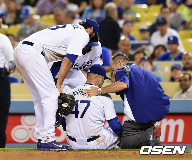 마홀름은 2일 다저스타디움에서 열린 시카고 컵스와 홈경기 도중 무릎을 다쳤다.7회 2사 2루에서 컵스 타자 아리스멘디 알칸타라가 친 타구는 좌측 파울 라인을 따라 가는 잘 맞은 타구였다. 하지만 다저스 1루수 스캇 벤슬라이크가 몸을 날리며 타구를 막아냈고 이어 1루 베이스로 들어오던 투수 마홀름에게 토스했다.