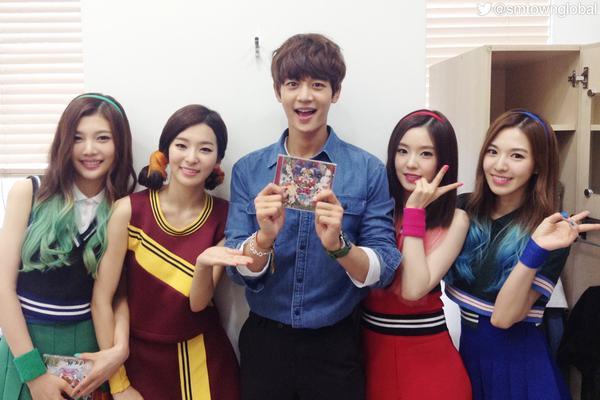 공개된 사진 속에는 레드벨벳의 앨범을 들고 다정하게 웃고있는 민호와 그런 민호의 양 옆에 서서 수줍은 듯 미소 짓고 있는 레드벨벳의 멤버들의 모습이 보인다. 특히 레드벨벳은 독특한 염색머리와 각자의 매력을 드러낸 의상으로 보는 이들의 시선을 사로잡는다.