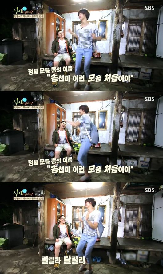 이에 송선미는 일어나 춤을 추며 상큼발랄한 모습을 보여 웃음을 자아냈다.
