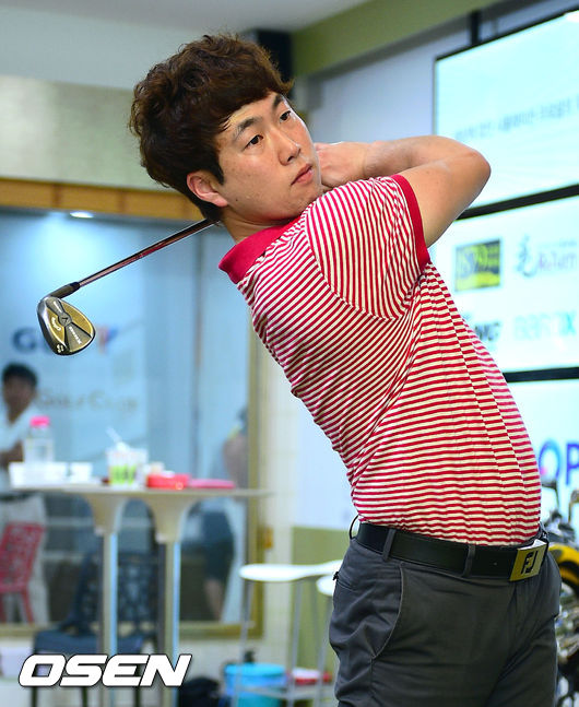 3일 경기도 시흥 화인비전스크린에서 진행된 '2014-2015 삼성증권 mPOP GTOUR Summer Season 3차 대회 결선' 에서 1라운드 8언더파로 단독선두를 기록하고 있는 순범준이 스윙을 하고 있다.