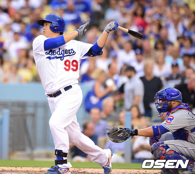 3일(한국시간) 미국 캘리포니아주 로스앤젤레스 다저스타디움에서 열린 '2014 메이저리그' LA 다저스와 시카고 컵스의 경기, 3회말 선두타자로 나선 류현진이 삼진을 당하고 있다.