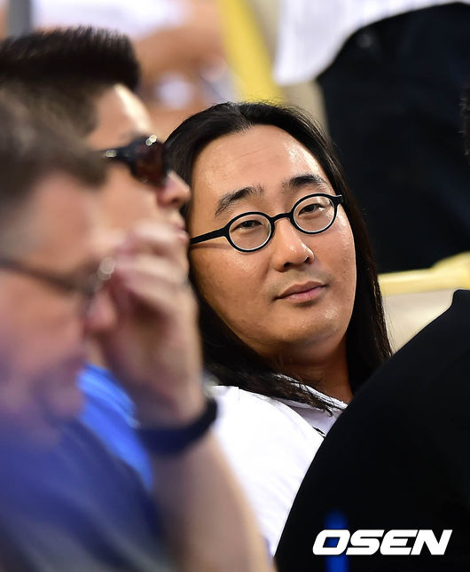 3일(한국시간) 미국 캘리포니아주 로스앤젤레스 다저스타디움에서 열린 '2014 메이저리그' LA 다저스와 시카고 컵스의 경기, 허민 고양 원더스 구단주가 류현진 경기를 관전하고 있다.
