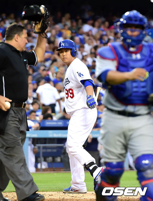 3일(한국시간) 미국 캘리포니아주 로스앤젤레스 다저스타디움에서 열린 '2014 메이저리그' LA 다저스와 시카고 컵스의 경기, 4회말 2사 1,3루 류현진이 삼진으로 물러나고 있다.