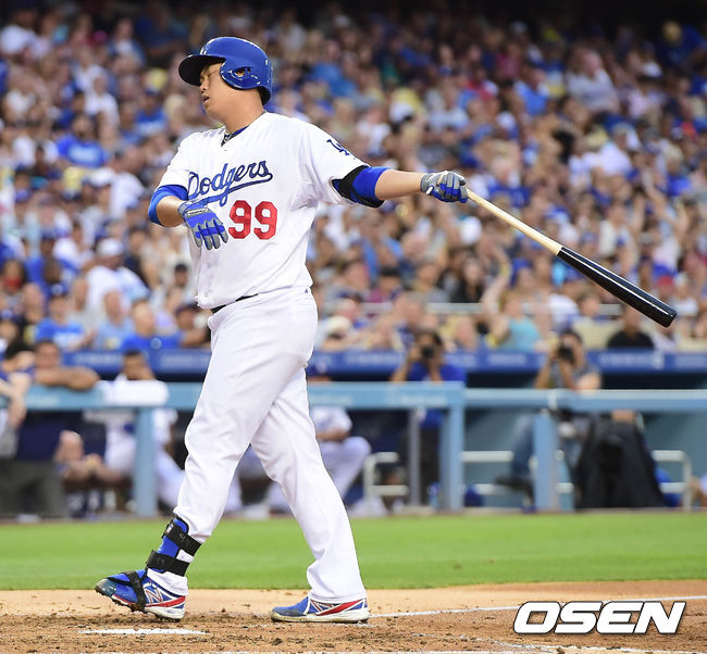 3일(한국시간) 미국 캘리포니아주 로스앤젤레스 다저스타디움에서 열린 '2014 메이저리그' LA 다저스와 시카고 컵스의 경기, 4회말 2사 1,3루 류현진이 삼진을 당한 후 아쉬워 하고 있다.