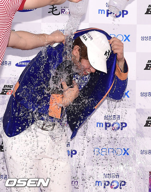 시상식에서 우승을 차지한 채성민이 동료들의 물세례를 받고 있다./ soul1014@osen.co.kr