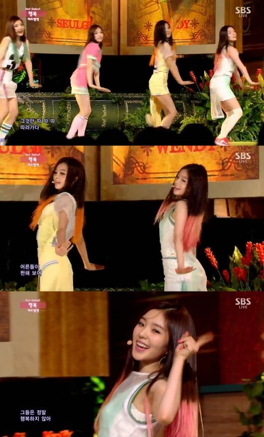 레드벨벳은 3일 오후 생방송된 SBS ‘인기가요’에서 타이틀곡 '행복'을 선보였다.