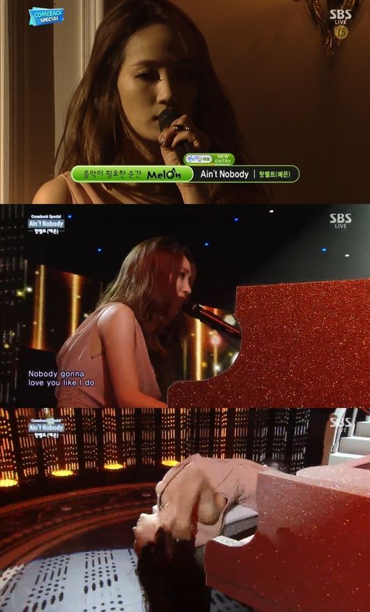 핫펠트는 3일 오후 생방송된 SBS ‘인기가요’에서 타이틀곡 '에인트 노바디'를 열창하며 눈길을 사로잡았다.