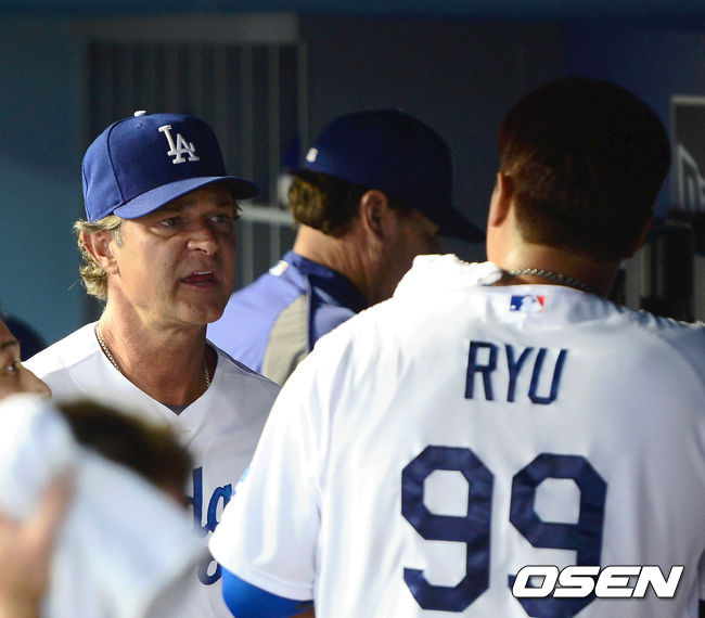 7회초 동점을 내준 류현진을 매팅리 감독이 위로하고 있다./youngrae@osen.co.kr