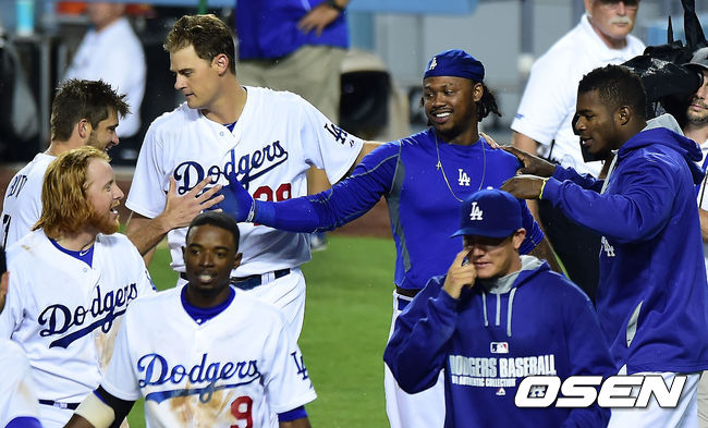 끝내기 홈런을 때린 LA 다저스 라미레즈가 동료들에게 축하받고 있다./youngrae@osen.co.kr