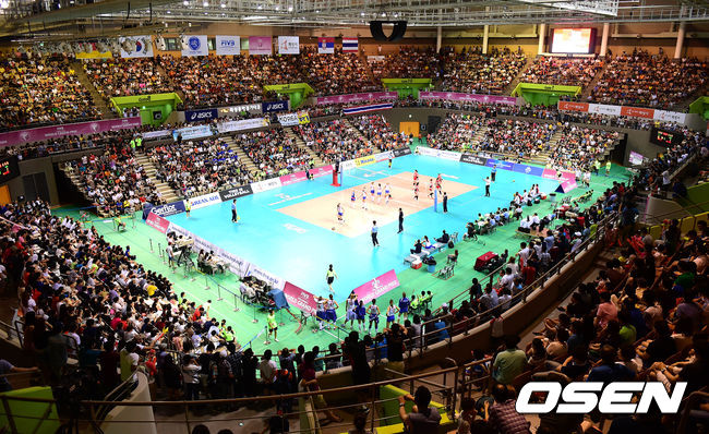 3일 오후 경기도 화성실내체육관에서 열린 '2014 그랑프리 세계여자배구대회' 대한민국과 세르비아의 경기, 4세트 화성실내체육관을 관중들이 가득 채우고 있다.