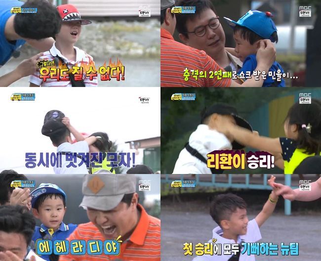 리환은 3일 오후 방송된 MBC 예능프로그램 '일밤-아빠어디가(이하 '아빠어디가')'에서 빈과의 모자 벗기기 대결에서 승리했다.