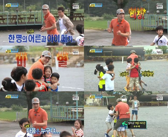 이날 방송에서 '아빠어디가' 가족들은 김성주의 사회로 짝 짓기 게임을 진행했다. 김성주가 외치는 숫자만큼 사람이 모여야 승리하는 게임.