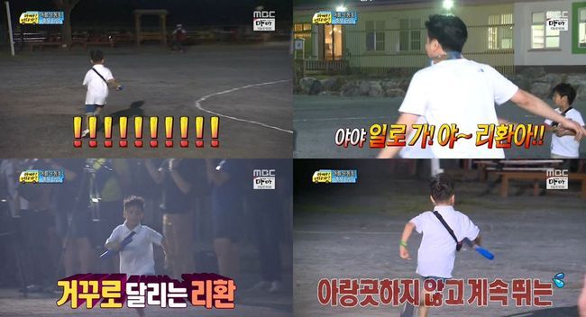 이날 방송에서 가족들은 마지막 게임으로 계주 경기를 펼쳤다. 아이들과 아빠들이 올드-뉴 팀으로 나뉘어 게임을 진행한 가운데 안리환의 차례, 리환은 바통을 이어받고는 역주행을 해 보는 이들을 폭소케 했다.