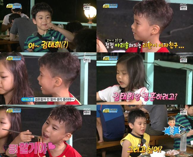 이에 아이들이 "아, 김태희"라고 말하자 리환은 "아, 말하지 말라고 했잖아"라고 쑥스러워했다.