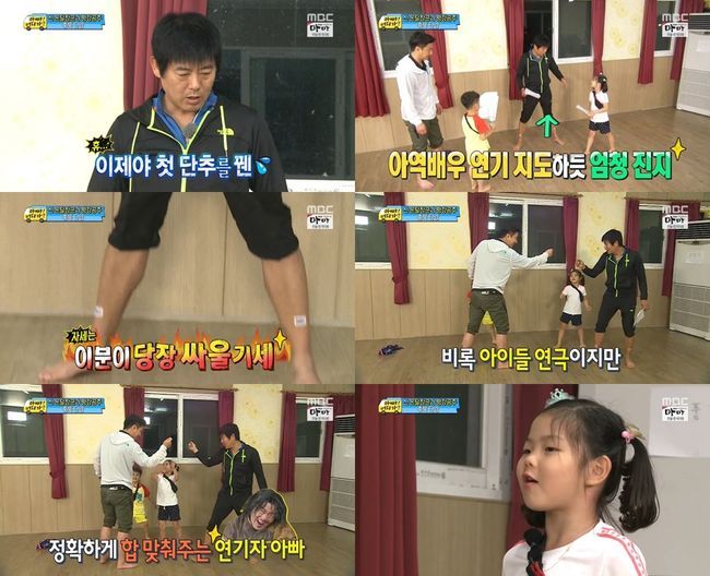 이날 방송에서 아이들은 바보온달과 평강공주 연극에 도전했다. 아이들의 연기 지도에 각자 아빠들이 나선 가운데 가장 열심인 주인공은 성동일.