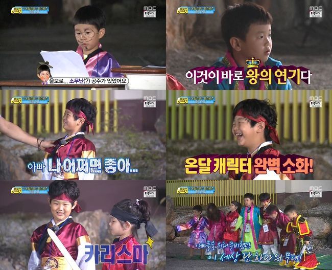 3일 오후 방송된 MBC 예능프로그램 '일밤-아빠어디가(이하 '아빠어디가')'에서는 '신(新) 온달장군과 평강공주' 연극에 도전하는 아이들의 모습이 전파를 탔다.