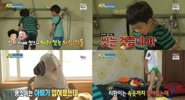 또한 평소 아빠가 씻겨줬던 것과는 다르게 혼자서도 세수를 하는가 하면 다소 어설프고 실수도 많지만 혼자 옷을 입는 등 다 큰 아이들의 모습이 눈길을 끌었다.