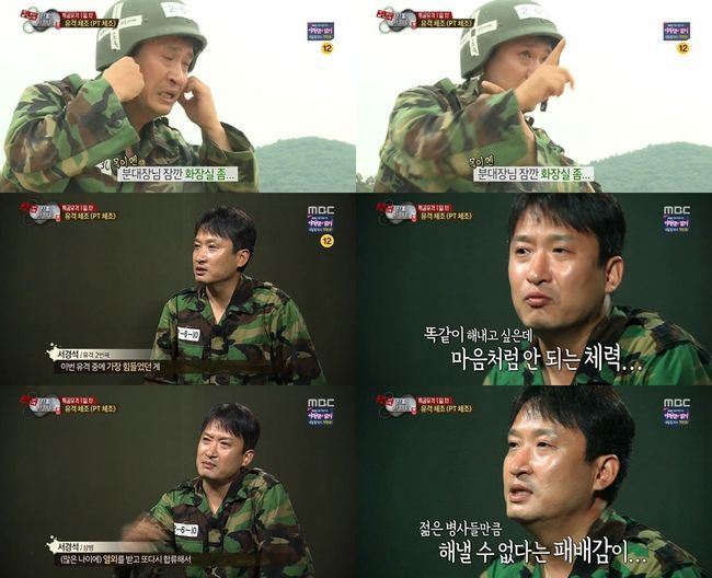 서경석은 3일 오후 방송된 MBC 예능프로그램 '일밤-진짜사나이(이하 '진짜사나이')'에서 전우들 몰래 눈물을 흘렸다.