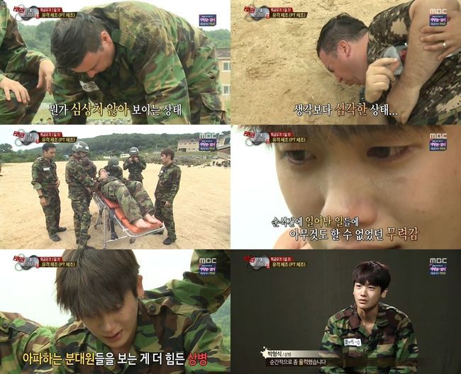 방송인 샘 해밍턴이 유격 도중 구급차에 실려 유격현장을 빠져나갔고 그 모습을 지켜보던 박형식은 눈물을 흘렸다.