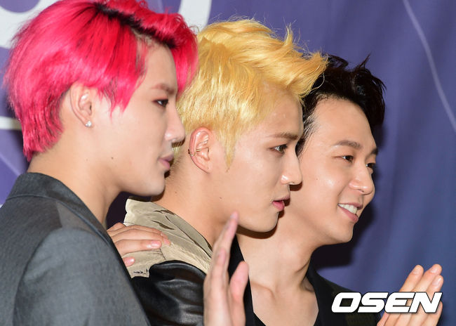 JYJ가 간담회를 마치고 포토타임을 하고 있다.