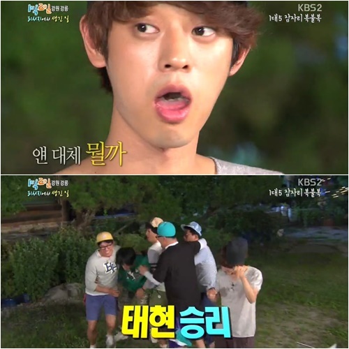 그는 3일 방송된 '1박2일'에서 다섯 형들을 상대로 5판 3선승제로 승패를 겨뤄 네가지 게임에서 패배하고 말았다.