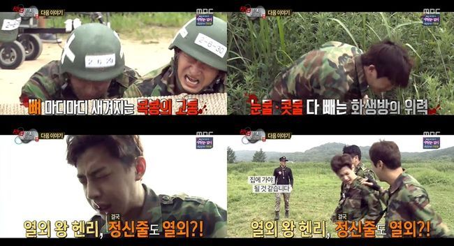 가장 힘들다는 목봉 훈련과 화생방 훈련이 예고된 이날 예고편에서 헨리는 화생방 훈련이 진행되는 방을 탈출해 눈물과 콧물을 쏙 뺐다.