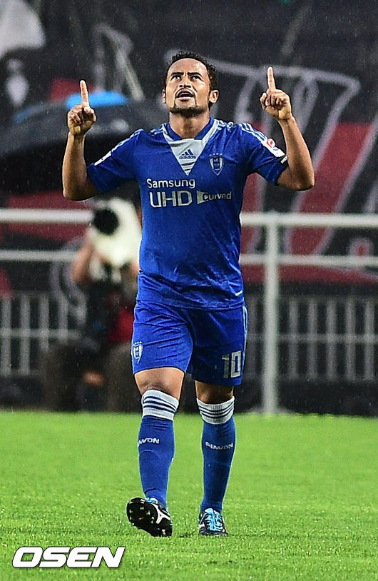 3일 수원월드컵경기장에서 열린 현대오일뱅크 K리그 클래식 2014 수원 삼성과 포항 스틸러스의 경기,전반 수원 산토스가 선취골을 넣고 환호하고 있다. 이날 산토스의 골은시작 44초만의 골로 K리그 사상 최단시간 골로 기록됐다.