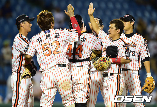 한화 선수들이 마운드에서 하이파이브를 나누고 있다./dreamer@osen.co.kr