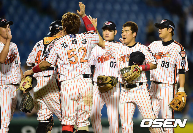 한화 선수들이 마운드에서 하이파이브를 나누고 있다./dreamer@osen.co.kr