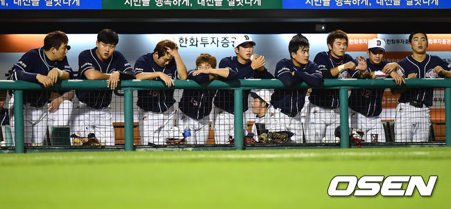9회초 두산 공격 2사 주자없는 상황에서 두산 선수들이 그라운드를 바라보고 있다./dreamer@osen.co.kr