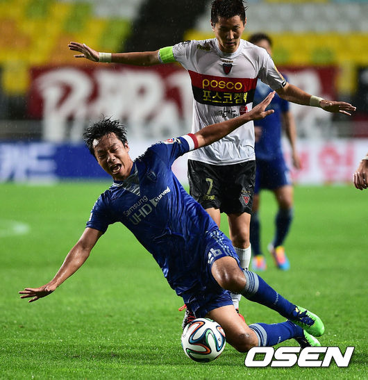 후반 수원 염기훈이 포항 김재성의 파울에 넘어지고 있다./ soul1014@osen.co.kr