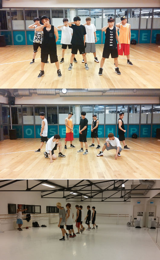 소속사 빅히트엔터테인먼트는 공식 SNS를 통해, 7월 말 독일과 스웨덴에서 열린 팬미팅 종료 후, 현지 연습실에서 촬영한 사진을 게재했다.