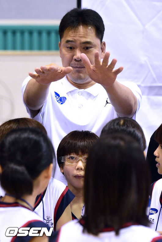 4일 오후 경기도 용인 삼성트레이닝센터에서 진행된 남자농구 삼성 썬더스-여자농구 삼성생명 블루밍스 재능기부 프로그램 '드림캠프'에서 삼성생명 이호근 감독이 유망주 선수들을 가르치고 있다.