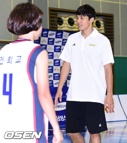 4일 오후 경기도 용인 삼성트레이닝센터에서 진행된 남자농구 삼성 썬더스-여자농구 삼성생명 블루밍스 재능기부 프로그램 '드림캠프'에서 삼성 썬더스 박재현이 유망주 선수들의 레슨을 돕고 있다.