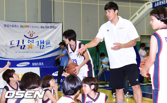 4일 오후 경기도 용인 삼성트레이닝센터에서 진행된 남자농구 삼성 썬더스-여자농구 삼성생명 블루밍스 재능기부 프로그램 '드림캠프'에서 삼성 썬더스 박재현이 유망주 선수들의 레슨을 돕고 있다.