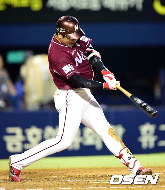 4회초 무사 1루에서 넥센 강정호가 좌중월 투런 홈런을 날리고 있다.