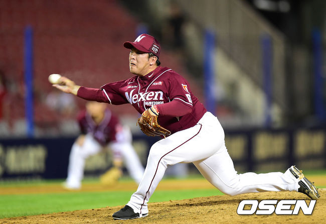 8회말 넥센 마정길이 힘차게 공을 던지고 있다.