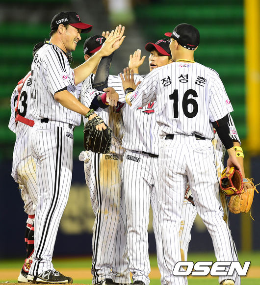 경기 종료 후 LG 선수들이 승리의 기쁨을 나누고 있다. /sunday@osen.co.kr