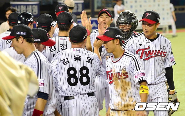 경기 종료 후 LG 선수들이 승리의 기쁨을 나누고 있다. /sunday@osen.co.kr