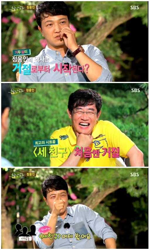 이날 정웅인은 "MBC 시트콤 '세 친구'(2000)을 처음엔 거절했다. 아직도 지방에 가도 많은 분들이 절 '세 친구'로 기억한다. 초등학생들도 절 놀린다"며 "제 인생은 거절에서 시작한다"고 말해 웃음을 자아냈다.