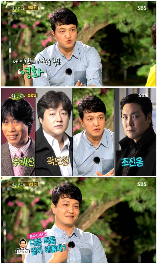 이날 정웅인은 "이제 영화를 많이 하고 싶다. 조진웅 곽도원 유해진이 목표"라며 "TV에서 많이 노출됐기 때문에 스크린 관계자들은 저를 찾지 않는다. 그래서 제가 직접 찾아가 작은 역이라고 하겠다고 어필하겠다는 마음"이라고 말했다.