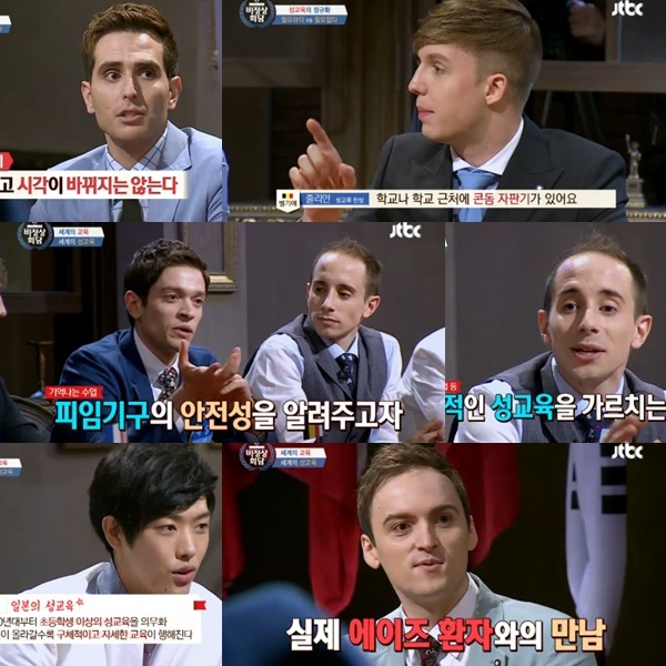 또한 호주의 다니엘 스눅스는 “호주에서는 중학교 2학년 때부터 성교육을 한다. 일주일에 한 번 씩 3개월 교육을 받은 후 시험을 본다”며 “콘돔 등으로 시험을 보는데 진지한 상황에서 이뤄진다”고 밝혔다.