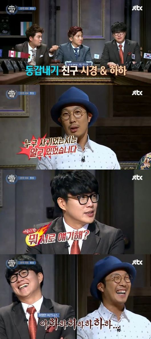 하하가 스컬과 함께 지난 4일 방송된 JTBC ‘비정상회담’ 게스트로 출연한 가운데 MC 전현무가 “성시경과 하하가 동갑 친구냐. 두 사람 친하냐”고 묻자 하하는 “비즈니스 친구다”고 답했다.