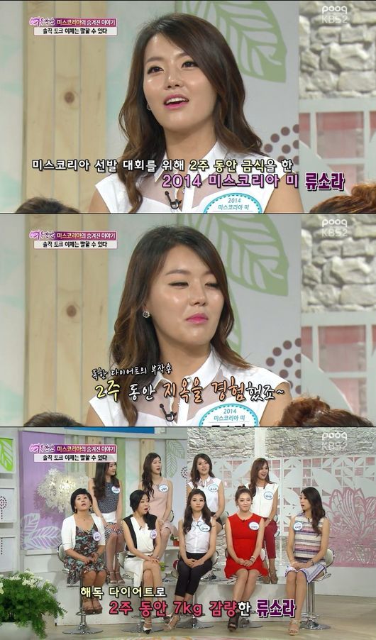 2014 미스코리아 미 류소라가 대회출전을 위해 독하게 다이어트를 한 사실을 공개했다.