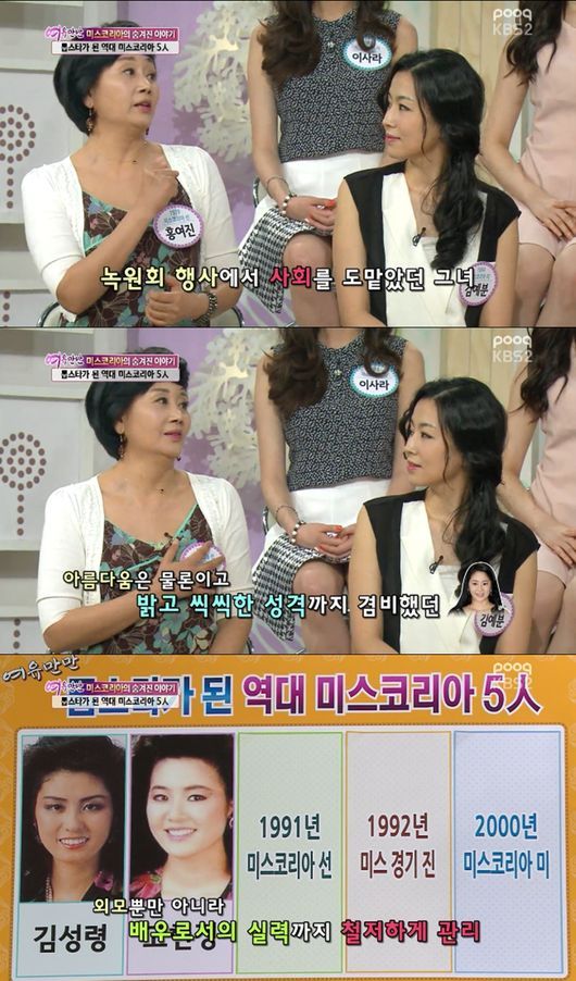5일 방송된 KBS 2TV '여유만만'에는 2014년 미스코리아들과 김예분, 홍여진이 출연했다.