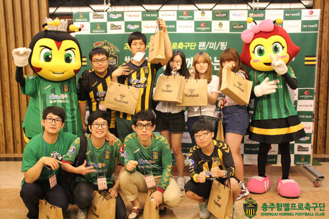 또한 팬 미팅 참여자 전원에게는 이번 팬 미팅을 기념하기 위해 특별히 제작된 험멜 티셔츠와 구단 뱃지가 기념품으로 증정되었으며, 충주 지역 업체들의 후원으로 피자와 순대, 머핀 그리고 아이스아메리카노 등 간단한 다과를 즐길 수 있는 스낵바가 준비되어 팬들에게 큰 만족감을 선사했다.